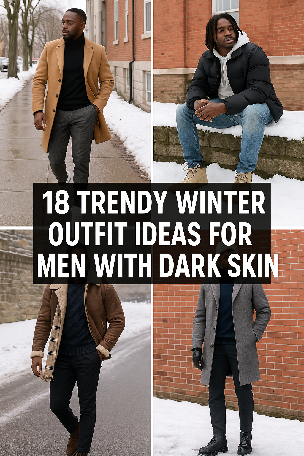 Here are 18 trendy winter outfit ideas for men with dark skin to help you stay warm, confident, and sharp this season.